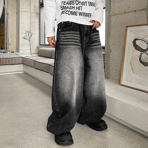 [신상오픈런]여자 데일리룩 사선 절개 포인트 와일드 데님 팬츠