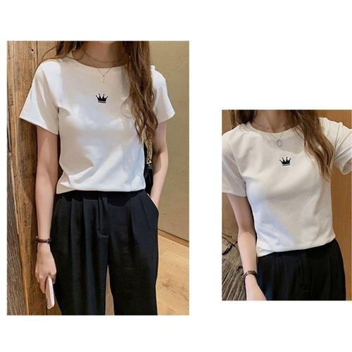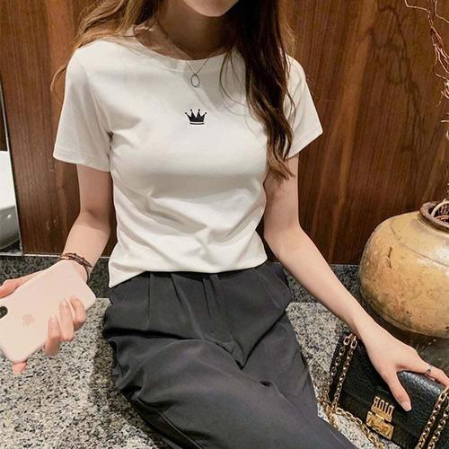 [셀럽하우스]여성 MVFD9907 왕관 반팔 슬림 티셔츠 캐주얼 라운드넥