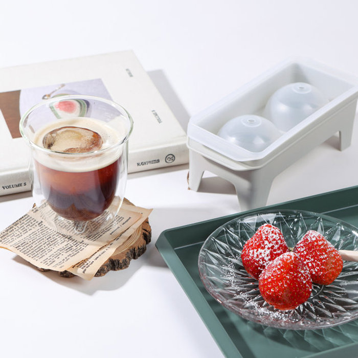 [인블룸] 감성 홈카페 투명 유리잔 유리컵 빅볼 얼음틀 실리콘 몰드/2개 세트/미니 원형 위스키 왕 얼음 트레이