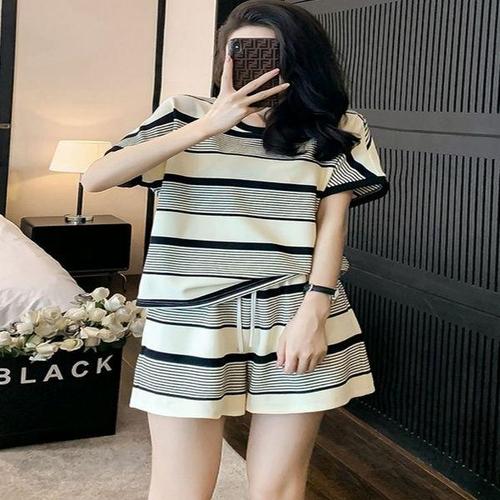 [에이치플러스몰]여자 여름 외출 홈웨어 스트라이프 반팔 반바지 세트