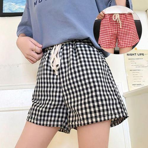 [에이치플러스몰]여자 러블리 면린넨 체크반바지 홈웨어 편한외출복