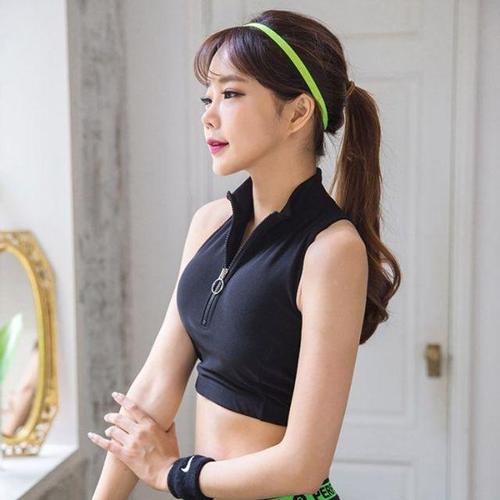 러닝 스포츠 브라 필라테스 요가 앞 지퍼 크롭 브라탑 나시브라탑
