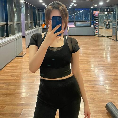 코튼 여성 반팔 러닝 티셔츠 배꼽 노출 스포츠 댄스 의류 요가 크롭