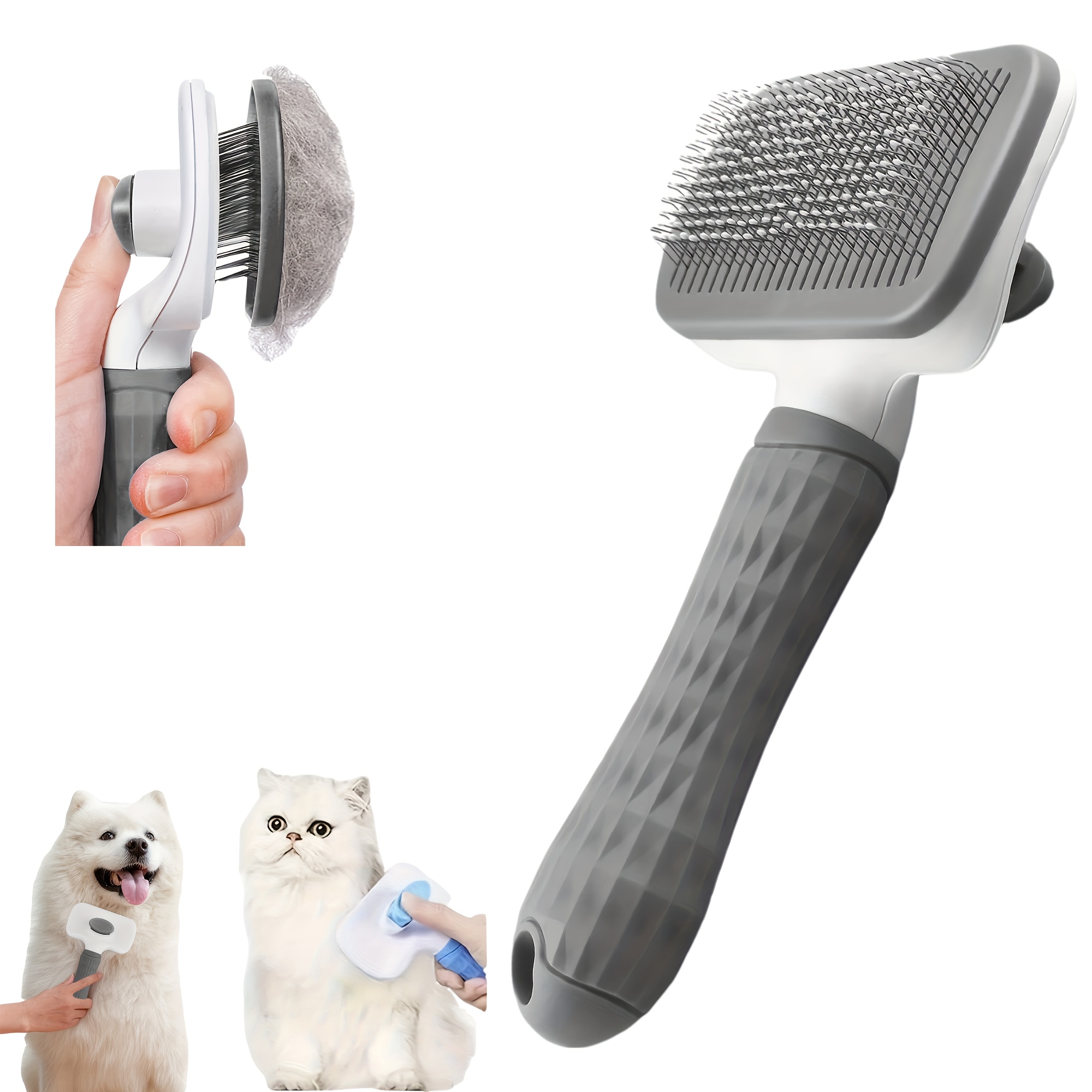 TEMU 강아지, 고양이를 위한 간편한 세척 그루밍 브러쉬 - 원 버튼 헤어 제거 기능이 있는 부드러운 탈모 마사지 빗, 플라스틱 손잡이, 털이 많이 나는 경우에 적합, 엉킴 방지 및 털 제거에 효과적이며, 인체공학적 디자인으로 강아지와 고양이 모두에게 적합