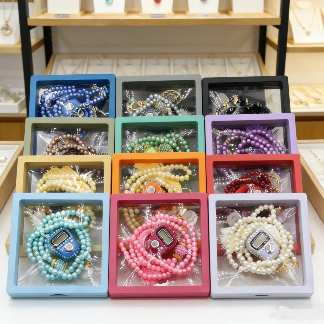 이슬람 타스비 기도 묵주 및 디지털 카운터 선물 세트 99개 모조 진주 팔찌 리셋 가능한 손가락 카운터 반지