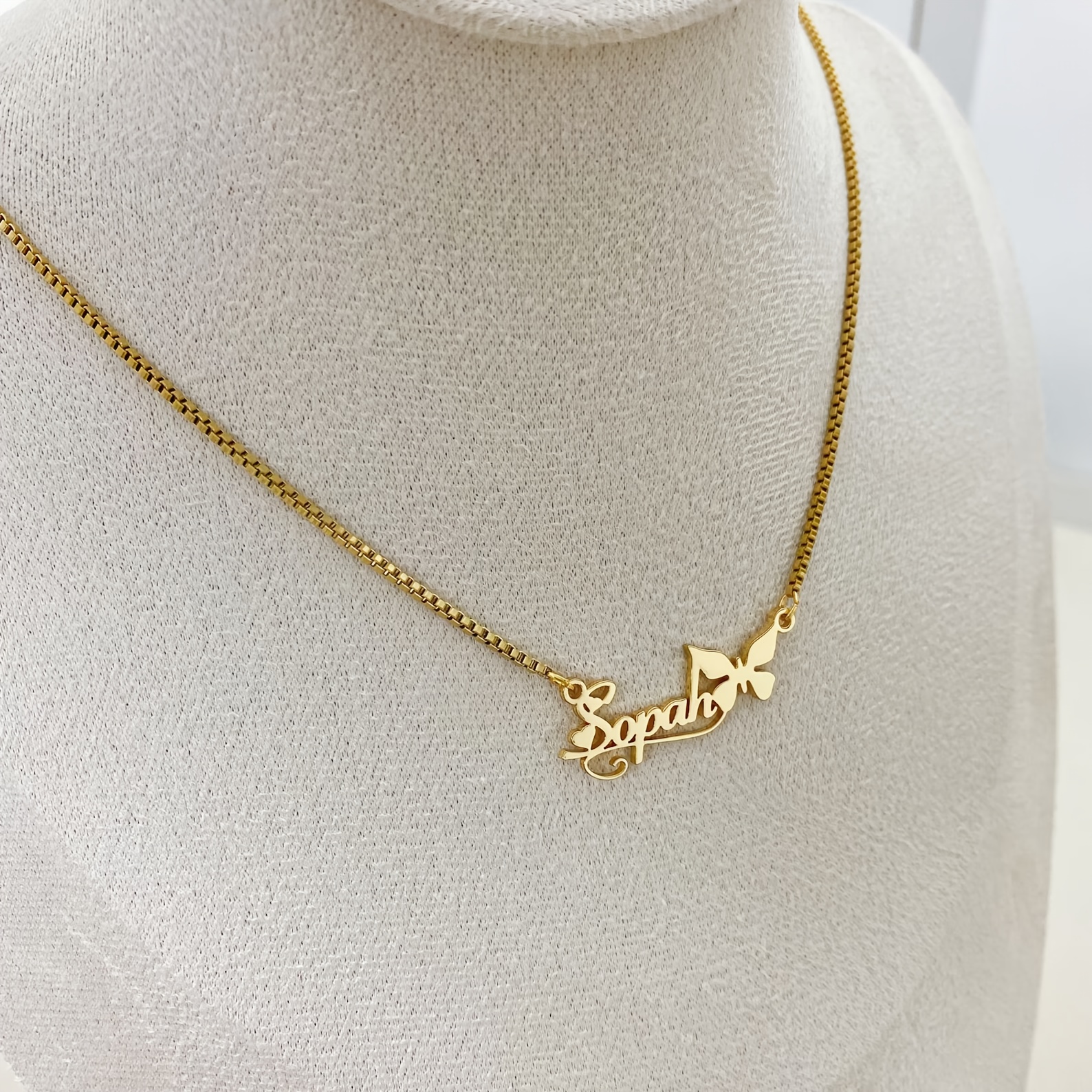 TEMU 개인화된 이름 목걸이와 나비 펜던트 - 맞춤형 금색 체인, 우아한 곡선 문자 디자인, 파티 및 선물용 조절 가능한 연장, 다용도 연중 지질, 데이 또는 캐주얼 의상에 적합한 선물 목걸이 | 우아한 곡선 문자 펜던트 | 조절 가능한 체인, 개인화된 목걸이