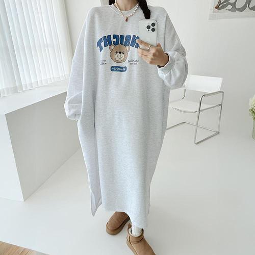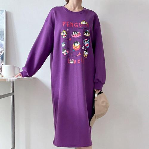 H스타일 LH)히트기모에브리OPS 겨울 여성 기모 원피스 OPS 루즈핏 홈웨어 파자마 데일리