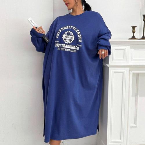 TEMU 여성용 캐주얼 긴팔 후드 스웨트셔츠 드레스 - 단색, 루즈핏, 헴, 폴리에스터, 가을/겨울용 기계 세탁 가능|가을원피스