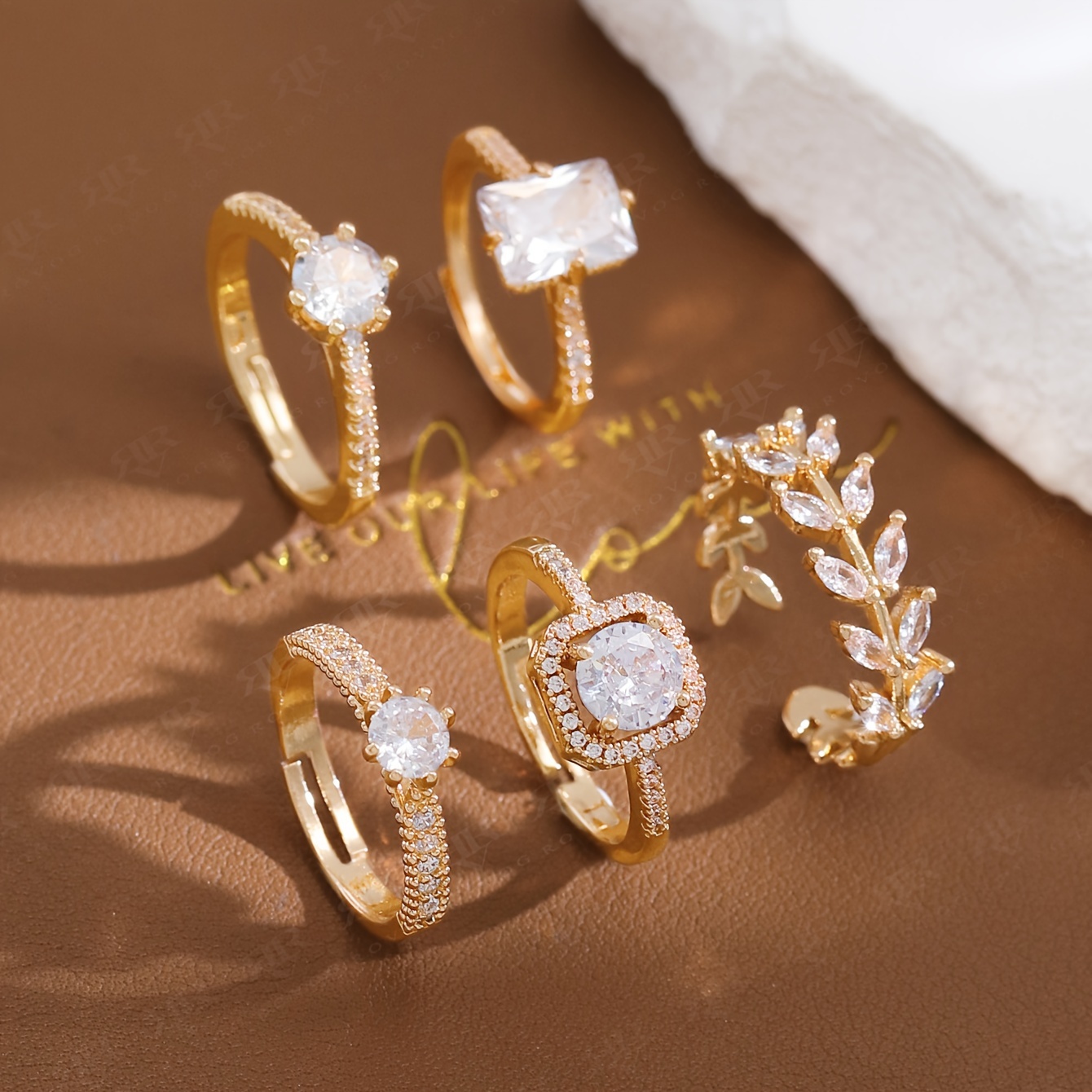 TEMU 3D & 잎 반지 - 남녀공용 스파클링 반지, 캐주얼 또는 정장용 우아한 링, 포멀 액세서리 | 달콤한 미학 | 정교한 디자인, 블링, 세밀한 장인 정신,패션 애호가