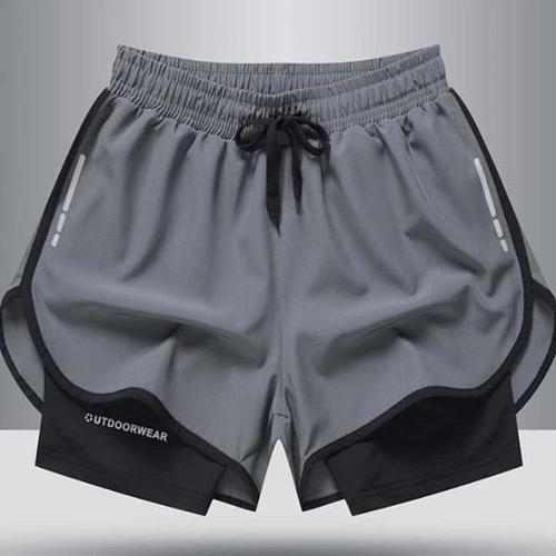 남성용 2 in 1 이중 레이어 스포츠 반바지 트레이닝복 짐 피트니스 조깅 운동복 하의