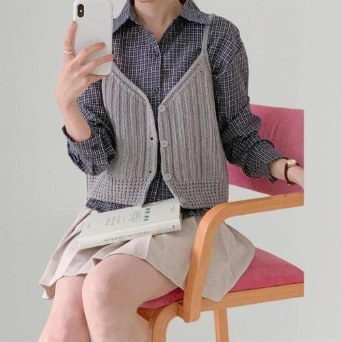 [다잇템][다잇템] 여성 격자 셔츠와 패턴 골지 코르셋 스웨터 세트_23661197_588872