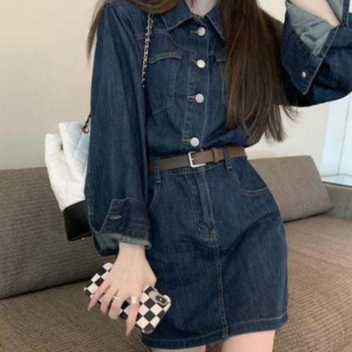 셀럽당칼라 데님 원피스 봄가을 뉴트로 허리라인을 슬림하게 보이게 하는 데님 스커트