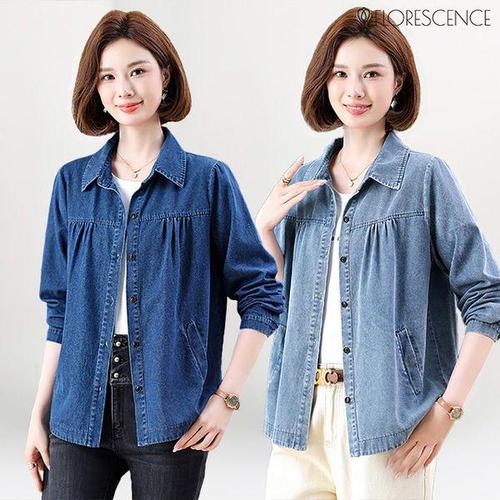 [헬리꽁땡]페미닌데님퍼프 셔츠재킷 롱셔츠 여성봄블라우스 롱티 박스티 여성긴팔셔츠 데님셔츠