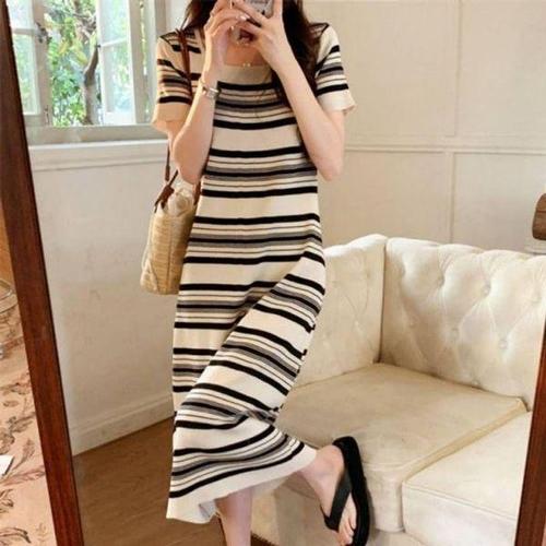 [에이치플러스몰]단가라 F007196 추천 라인 스판니트 꾸안꾸 원피스 단