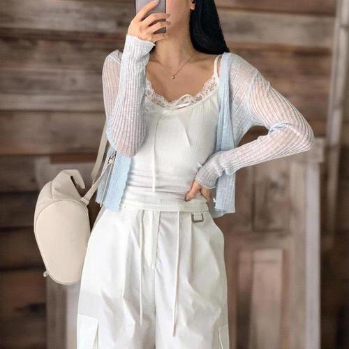 [신상오픈런]여성 레이스 패드 리본 스트랩 나시 골지탑