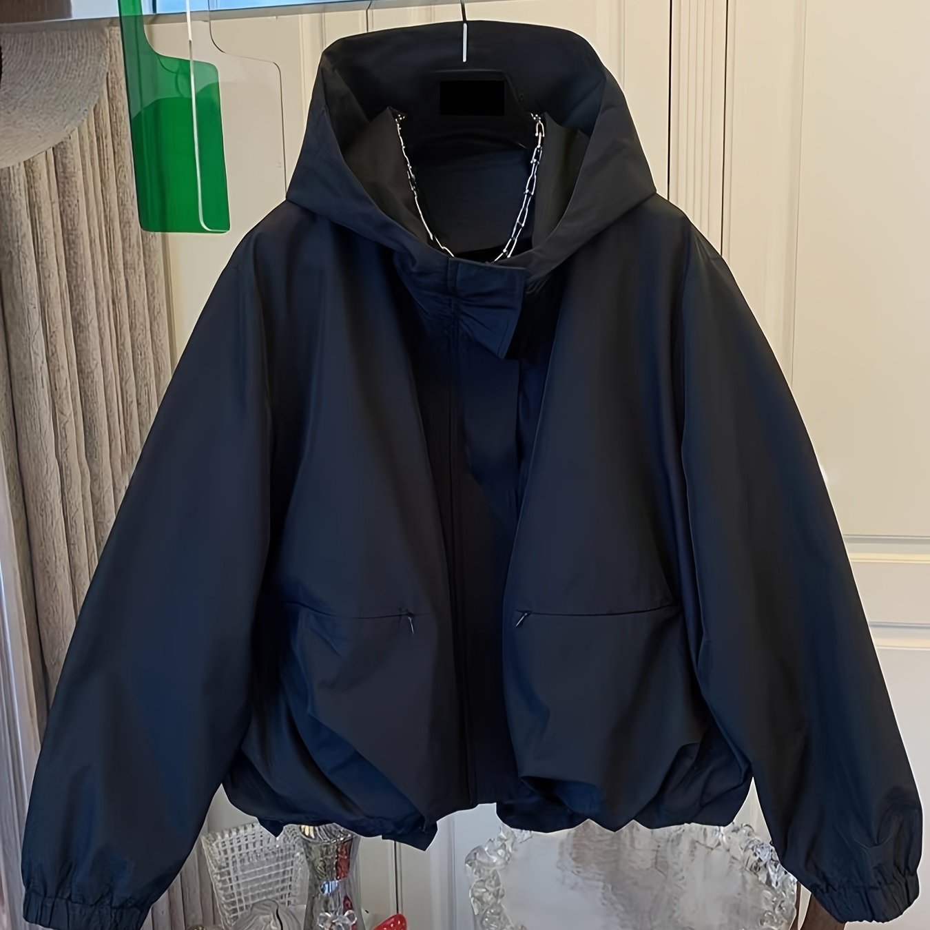 TEMU 봄과 가을을 위한 단색 지퍼 간단한 재킷, 캐주얼한 긴 소매 아우터, 여성 의류