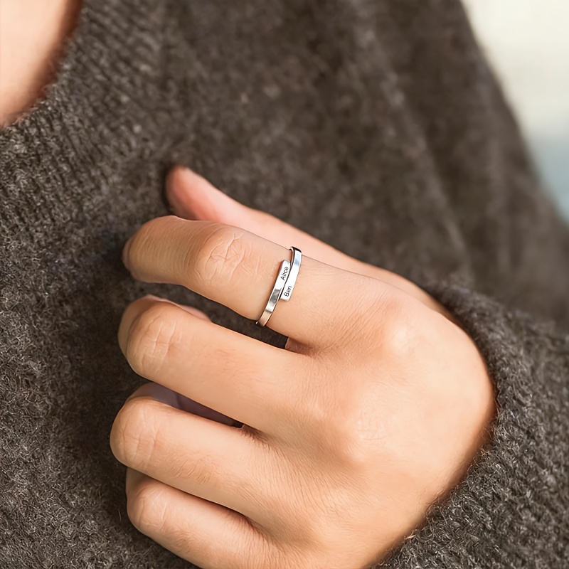 TEMU 맞춤형 2mm 스테인리스 스틸 오픈 링 - 이름 각인 제작, 심플한 스태ッキング 액세서리, 어머니의 날, 밸런타인데이, 기념일, 크리스마스 선물용으로 완벽, , 내구성, 정교한 장인 정신