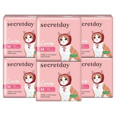 시크릿데이 러브 생리대 날개형, 중형, 16개입, 6개