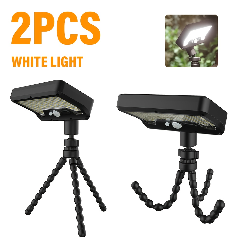 TEMU 2개 세트 상업용 태양광 모션 센서 조명, 접이식 유연 마운팅 브래킷, 92개 LED, 3가지 모드 자동 온/오프, 야외 안전 조명용 (나무 가지, 텐트, 캠핑장, 테이블, 벽, 거리, 정원)