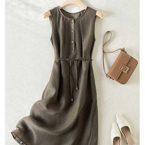 [HYIJR776_4B]셔츠원피스 끈나시 여름 롱 무지 바캉스룩