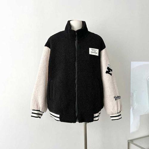 캐주얼 패치 여성 2컬러 배색 야구점퍼 뽀글이 후리스