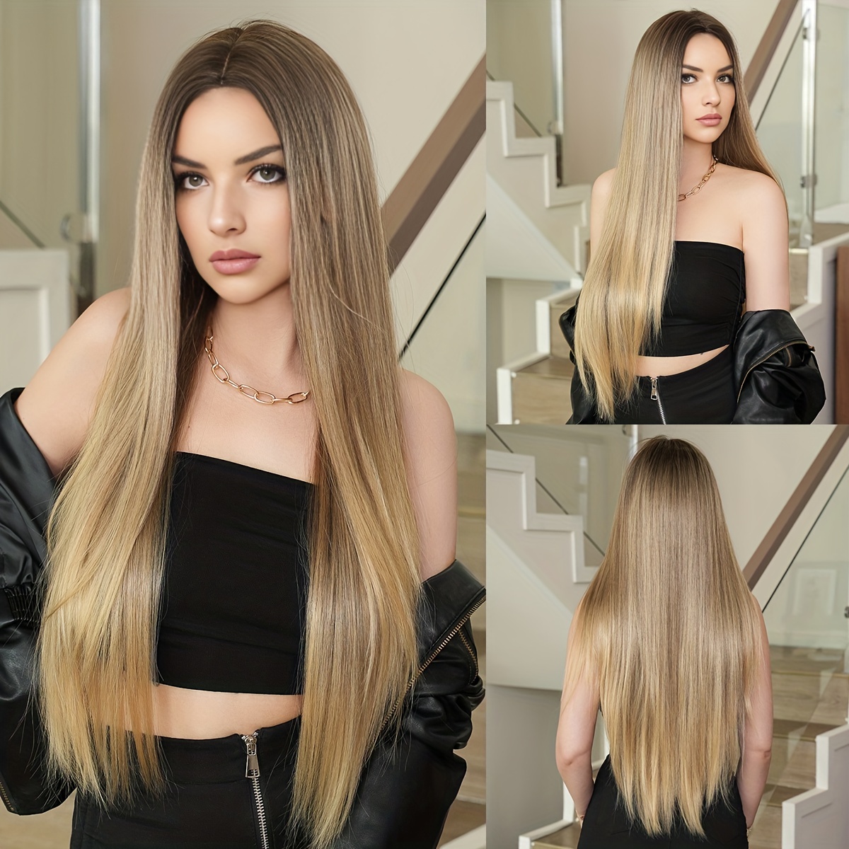 TEMU 여성용 NAMM 허니 블론드 롱 가발, 합성 열 저항 섬유, 일상 코스프레 사용, 150% 밀도, 초보자 친화적, 코스프레 가발