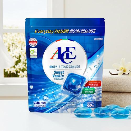 에이스 스윗바닐라향 1챔버 캡슐세제 200개입/고농축 중성세제 실내건조