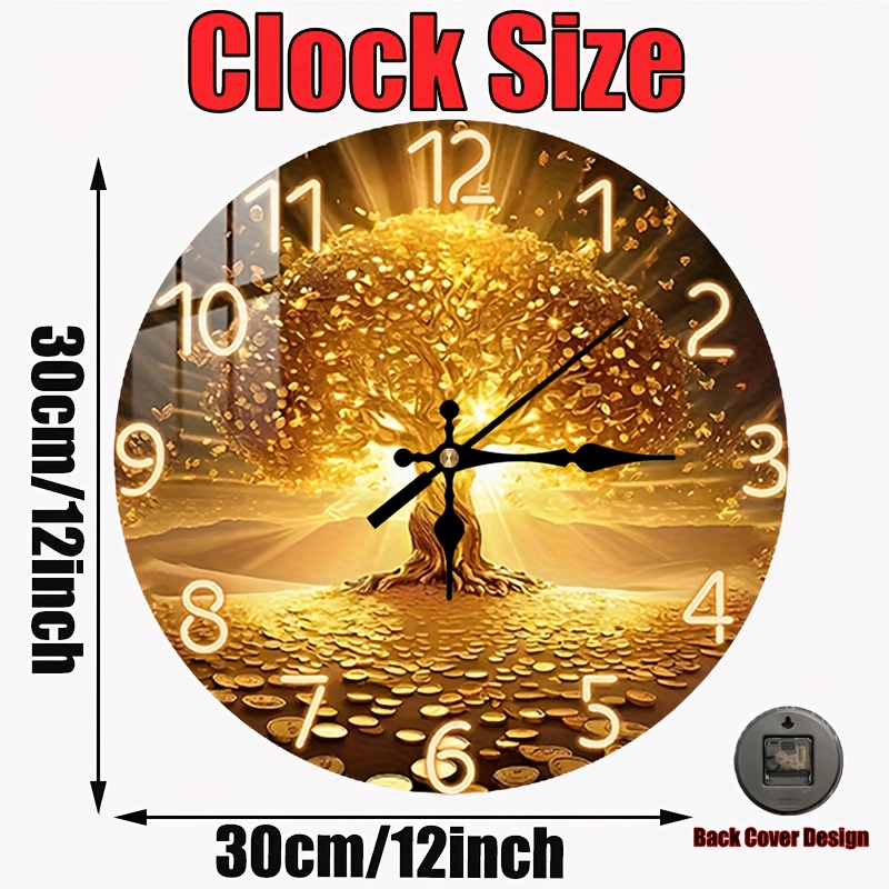 TEMU 2D 플랫. 1개. 골든 우드 벽시계 - 고급 홈 데코 무소음 원형 시계 - 침실, 거실, 사무실, 주방 및 욕실을 위한 이상적인 장식 - 12인치 (AA 배터리 제외)