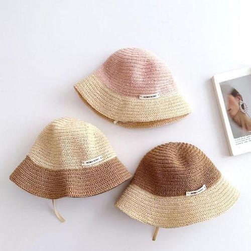 [에이치플러스몰]유아 아동 어린이 투톤태그밀짚 벙거지 돌돌이 봄 여름 가을 챙모자 귀여운모자 벙거지 ..