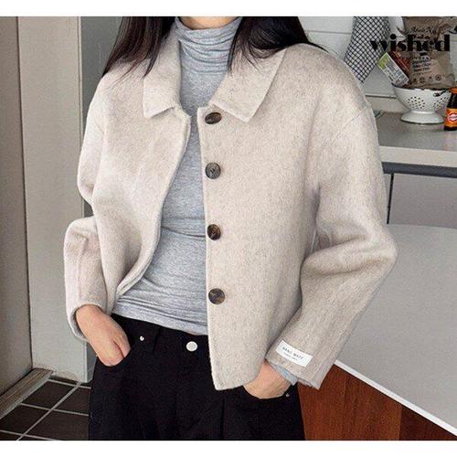 [위시드][시즌오프] 베이직 카라 숏 버튼 울 코트 (WIBDCT009)