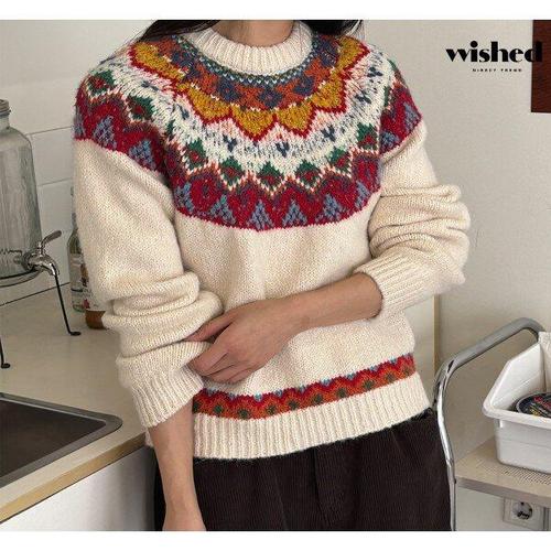 [위시드][시즌오프] 데일리 컬러 노르딕 패턴 울 긴팔 니트 (WIBDNT014)