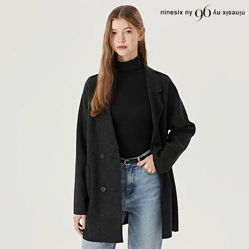 [나인식스뉴욕][시즌오프] 더블 버튼 카라 포켓 비스코스 하프 코트 (NO4JH001L0)