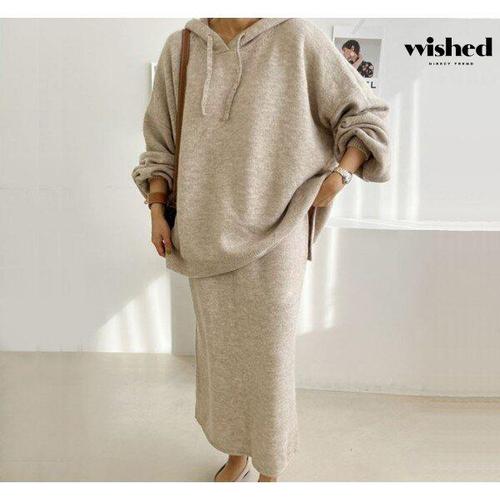 [위시드][시즌오프] 베이직 후드 니트 롱 H라인 투피스 셋업 (WIADOP021)