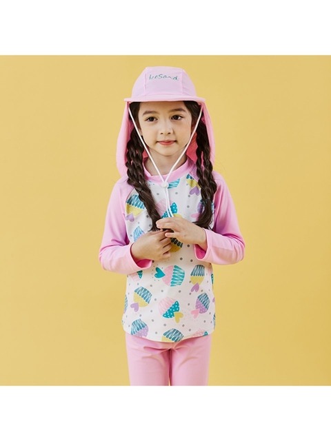 [아이스샌드] 아이스샌드 키즈 유아 여아동 래쉬가드+플랩캡 수영복 세트 UNU-33102