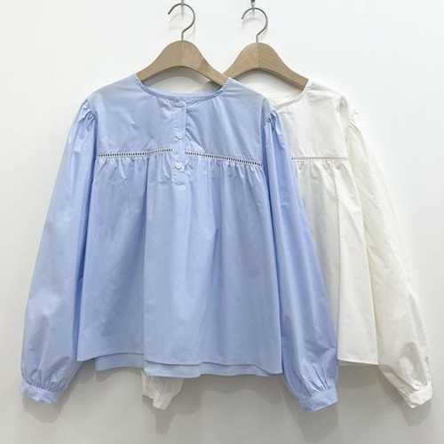 슈팅스타 / 봄 심플 라운드넥 펀칭 d해커 블라우스