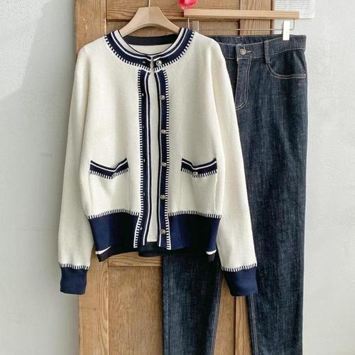 [신상오픈런]학부모회 여성 투톤 하객 크림색 니트가디건 봄자켓 (29806183)