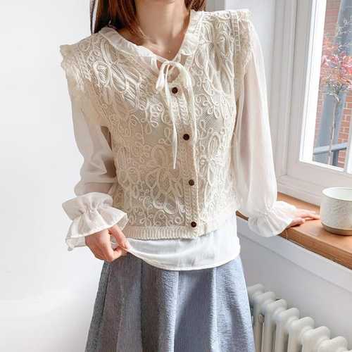 옷자락 / 여자 봄 여름 시스루 뜨개 니트 블라우스 세트