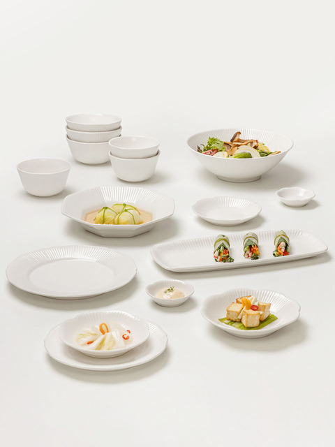 [윤도자기] 순백 화이트 도자기 2인 홈세트 14P