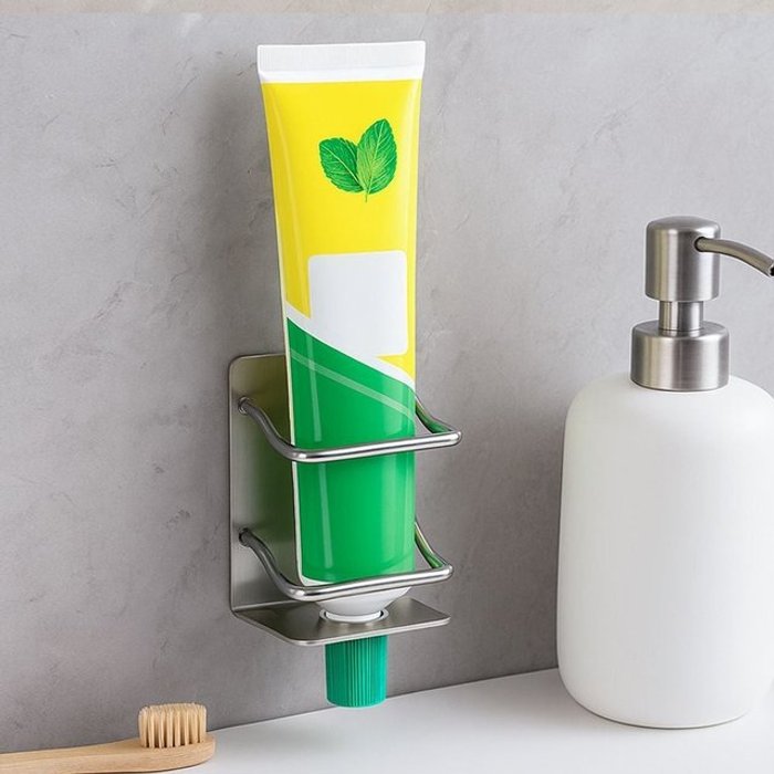 엄지척 무타공 스텐 치약거치대 실버 부착식 치약홀더