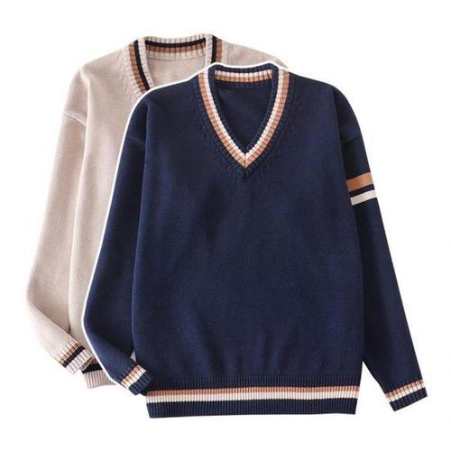 [셀러허브_여성트랜드패션]남녀공용 스웨터 브이넥 니트 2컬러 (대여) 두줄라인