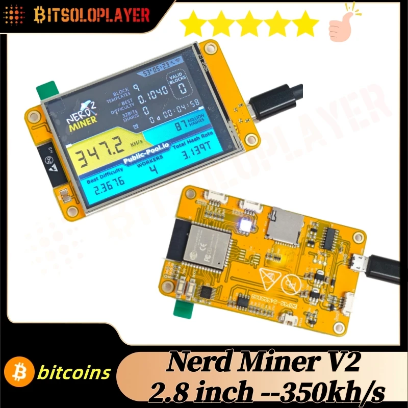 비트코인즈 너드 마이너 V2 2.8인치 ESP32 스마트 터치 디스플레이 BTC 솔로 마이너 350KH/S Win 3.125 BTC 로또 마이너