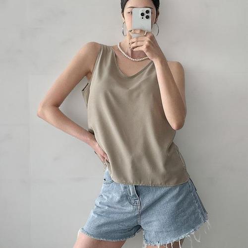 옷자락 / 여자 양브이 찰랑핏 무지 여름이너 민소매 블라우스
