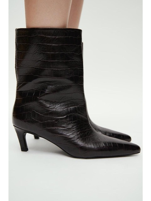 [에이치엔엠] 레더 앵클 부츠 다크 브라운/이미테이션 크로커다일 1296688001