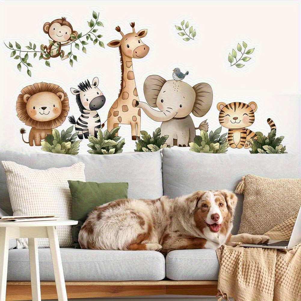 TEMU 기린, 코끼리, 말의 귀여운 만화 숲 동물 벽 스티커. 방, 침실, 거실 배경 장식용.