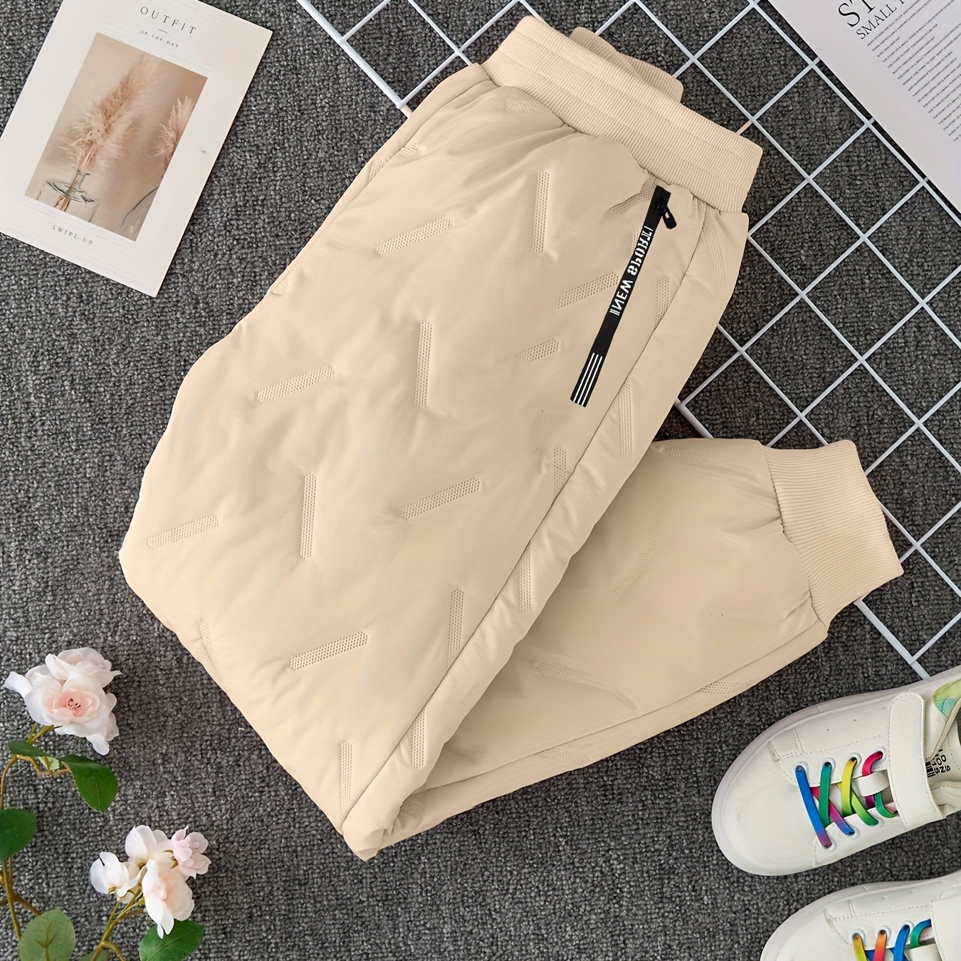 TEMU 가을 겨울 아동용 캐주얼 팬츠, 두꺼운 보온 커프 디자인과 지퍼백, 야외 활동에 완벽