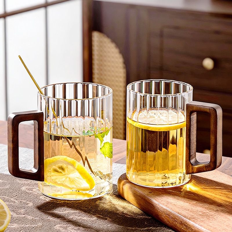TEMU 1개 KAPLAN 나무 손잡이 티 컵, 내열 유리 브루잉 컵, 나무 손잡이 유리 머그, 가정 또는 사무실에서 차와 물을 분리하는 데 적합, 크리스마스, 할로윈 및 추수감사절에 이상적인 선물|캠핑용품