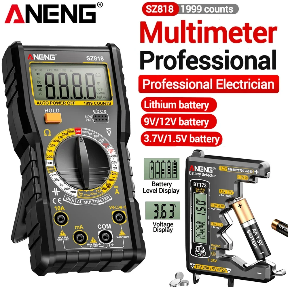 디지털 멀티미터 지능형 자동차 전압 삼극관 테스터 SZ818+BT173 9V/12V 디지털 디스플레이 배터리 테스터 감지기 도구