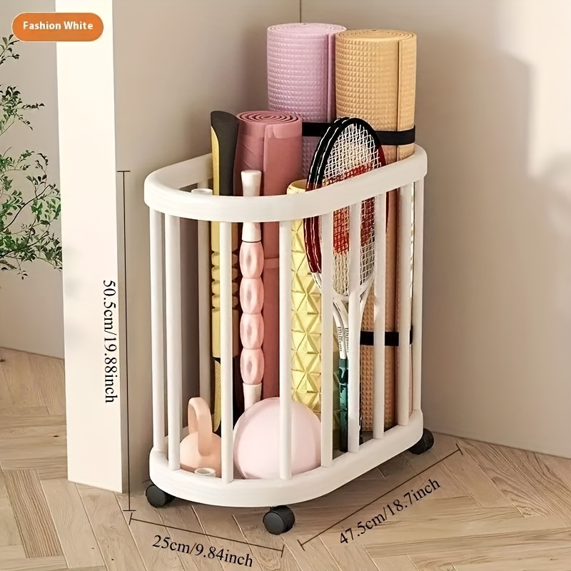 TEMU 4륜 부드러운 이동이 가능한 튼튼한 플라스틱 모바일 수납 바구니 - 요가 매트/스포츠 장비/헬스장 액세서리 보관에 적합, 강력한 구조 & 쉬운 다기능 정리함, 다양한 칸막이가 있는 가정 및 헬스장 정리용으로 이상적|요가