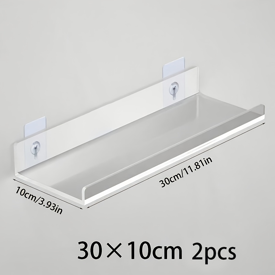 TEMU 드릴 필요 없는 접착식 벽걸이 모던 & 아크릴 플로팅 선반, 거울 간격 디자인 - 공간 절약형 욕실 수납 선반, 샤워, 욕조, 세면대 정리용 레이어드 캐비닛 분리대 - 간편 조립, 다목적 플로팅 선반|틈새선반