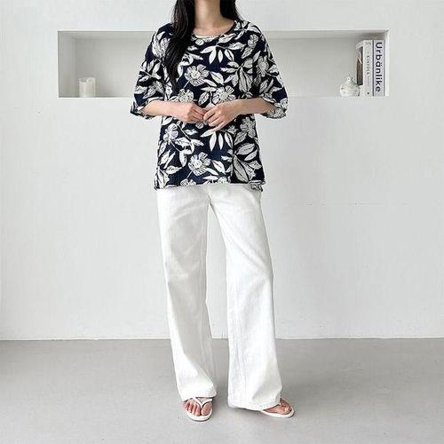 [샵앤]국산 여성 단추 라운드넥 인견 캡나시 4패턴 티셔츠 YF-WSH-20667-들꽃